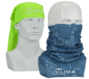The evaporative Clima-Band™ can be worn in multiple ways on the neck, face, head and wrist to resist wind, sun and dust.